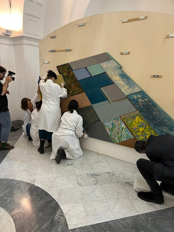 Grazie alla partecipazione dell’Istituto Centrale per il Restauro e alla sua Scuola di Alta Formazione, l’intervento conservativo sull’opera è stato anche l’occasione per affrontare alcune questioni che animano l’attuale dibattito sul restauro, dal ruolo dell’arte nella contemporaneità, alle questioni di metodo, lì dove entrano in gioco materiali e tecniche non convenzionali o sono necessarie soluzioni specifiche e complesse.