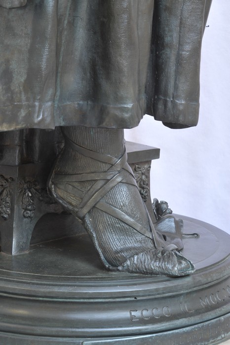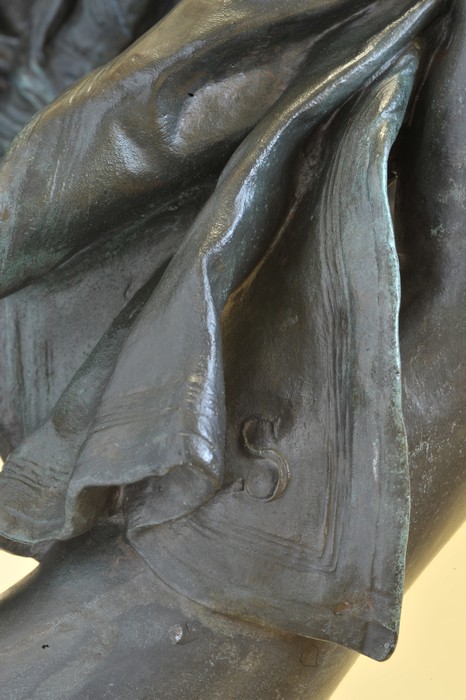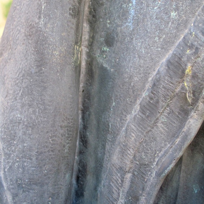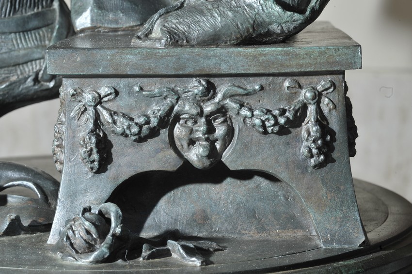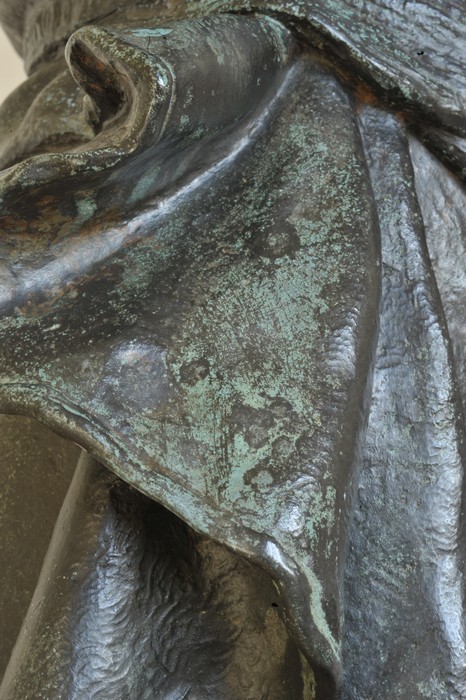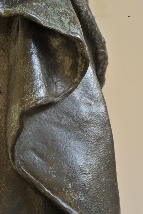 L’opera in bronzo è stata realizzata in fusione a cera persa, ottenuta con più porzioni cave poi assemblate tramite saldatura e poggiante su una base circolare.