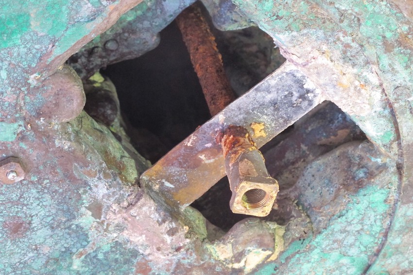 L'opera è percorsa internamente da un tubo di ferro che parte dalla base e termina in corrispondenza della fiaccola, forse adibito al passaggio di gas che ne permetteva la sua accensione.